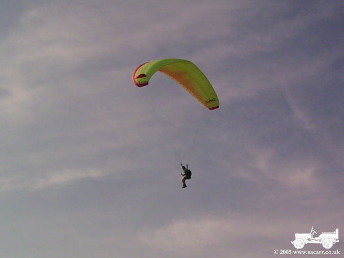 Arriving back at Le Havre still to early for the ferry, we drove over the shorter inland suspension bridge and went North up the coast a few miles. As the sun was lowering in the sky, we stopped at a bay where a guy was paragliding using the slope lift from the cliffs.