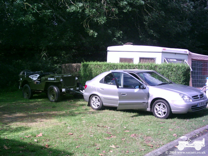 We needed to be off the campsite by 11am, and heavy rain during the night didn't help a speedy packing of the tent. The whole clear up took three hours. Here's the car and jeep packed ready to roll. |