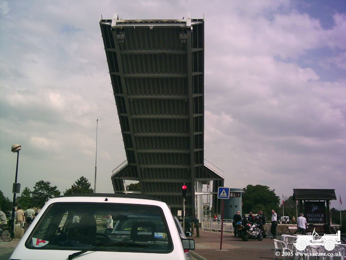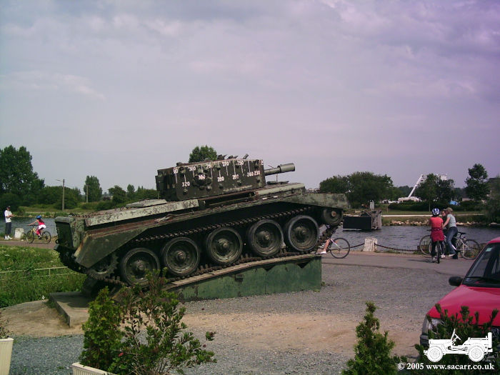 After Sword Beach, we crossed back over the 'New' Pegasus Bridge, but not before we were held up while it opened to let two boats through. We also noticed a Centaur Tank opposite the Pegasus Bridge Cafe which we hadn't seen on our trip to the museum. The museum can just be seen in front of the tank, over the river. |