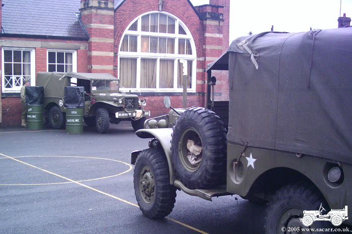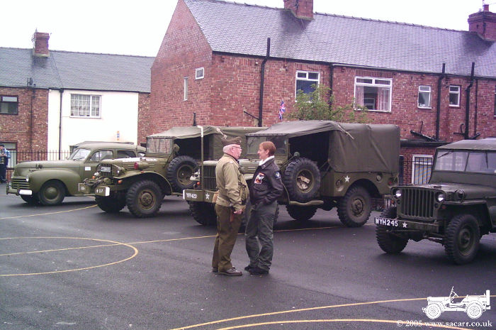of vehicles gathered at the school for the display, along with a few