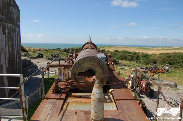 clear in the picture along the barrel of the gun, England's White Cliffs