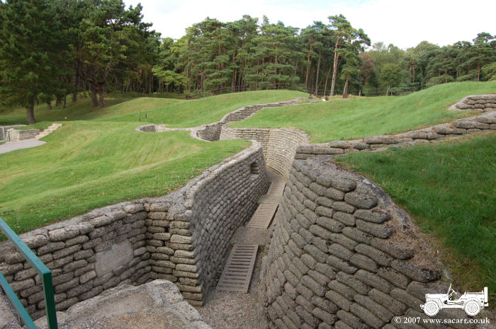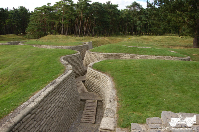 still trenches, lined with concrete sandbags. The land around these