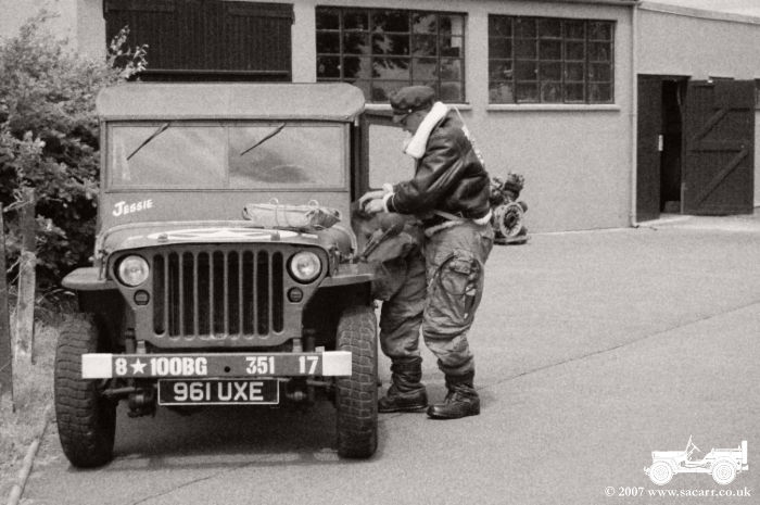 On June 27th, I took the Jeep to Station 139 - Thorpe Abbotts, the wartime base of the 100th Bomb Group. The purpose of the photo shoot was to recreate the wartime scene below left, the original image I used to copy my Jeep markings from. Getting this shot took about 1/2 hour, but as I had other flying kit with me, and at this historic location, it was an opportunity too good to let pass.