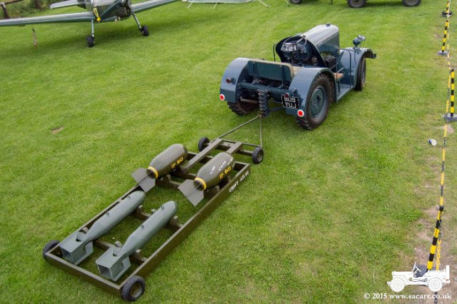 bomb tractor and trailer with a load of bombs, an RAF staff car and