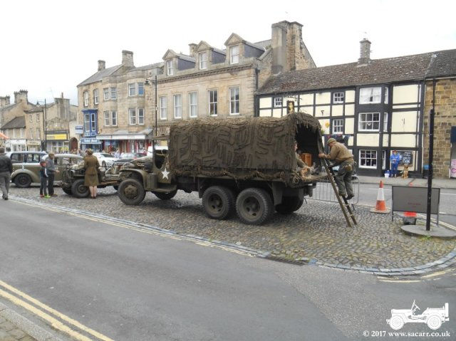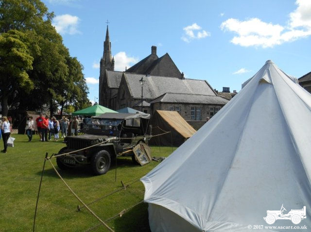 vehicles were parked up in the market place, while the various re-enactor