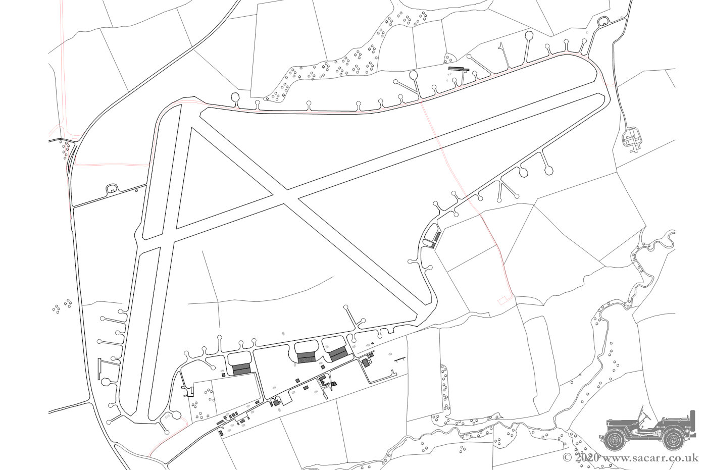 runways. The runway survives, but is severely overgrown, with large sections