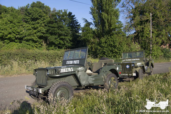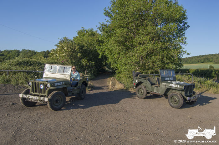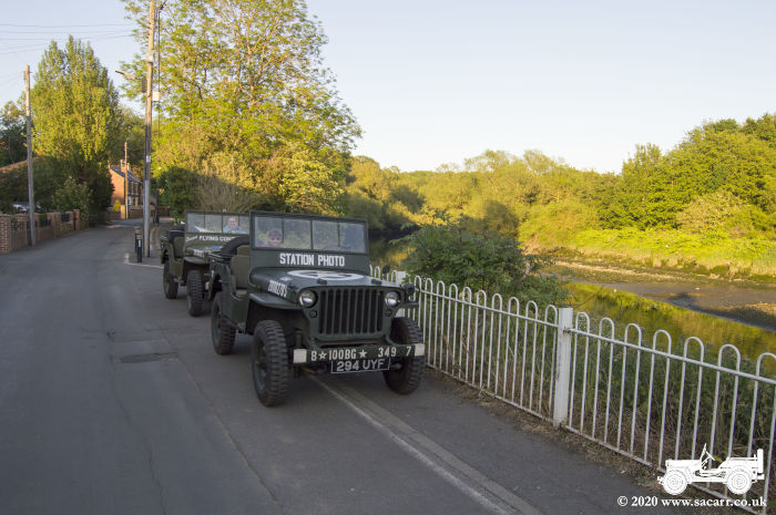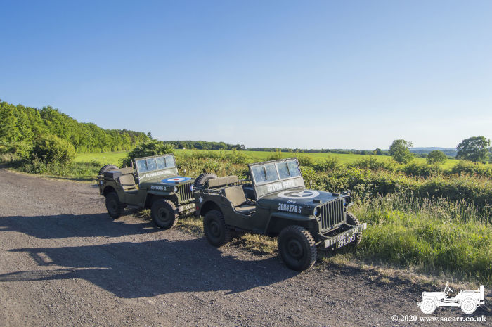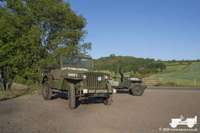 a small wood. The sun was behind the wood, so the Jeeps were in shade for the
