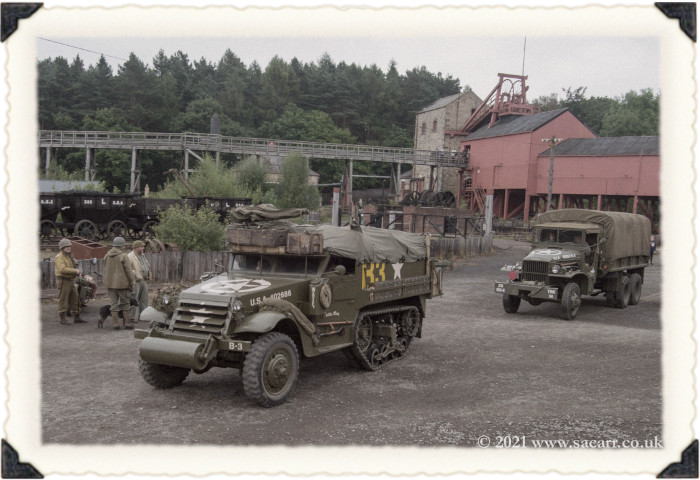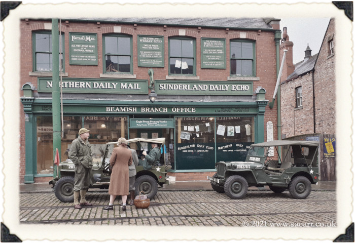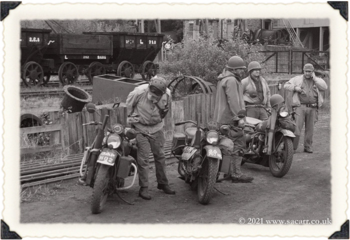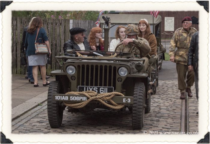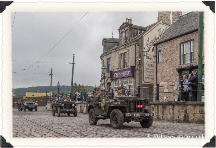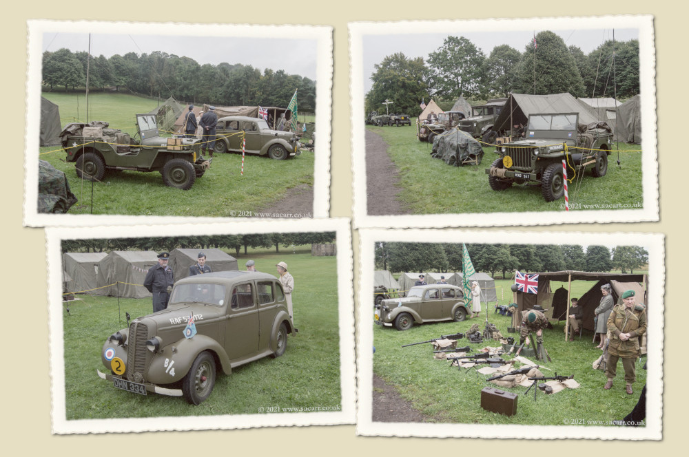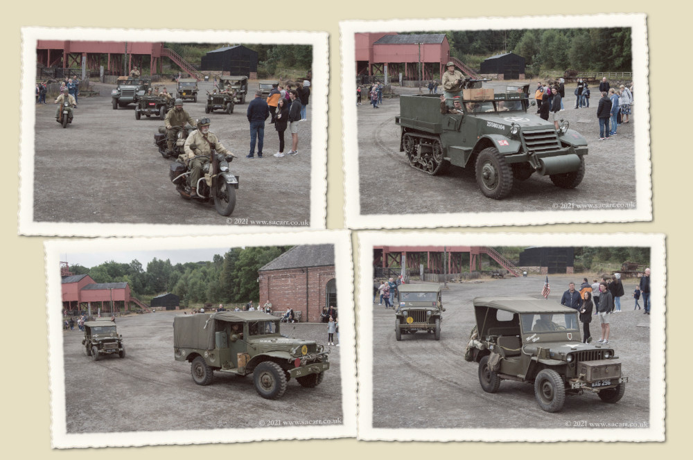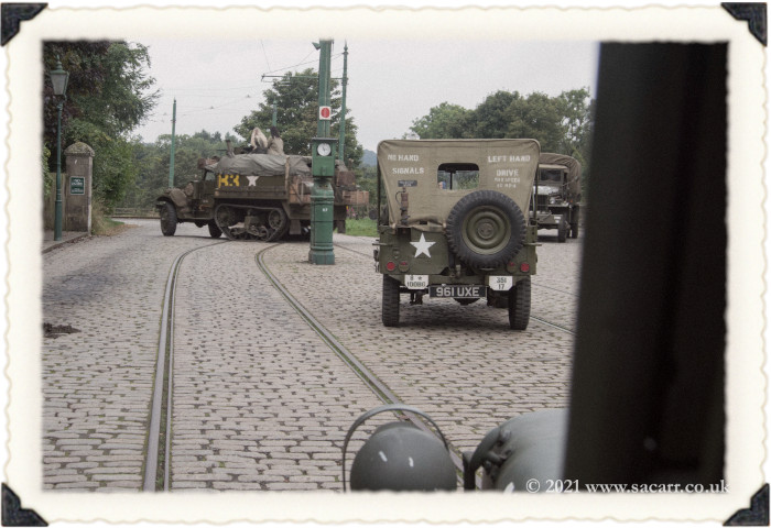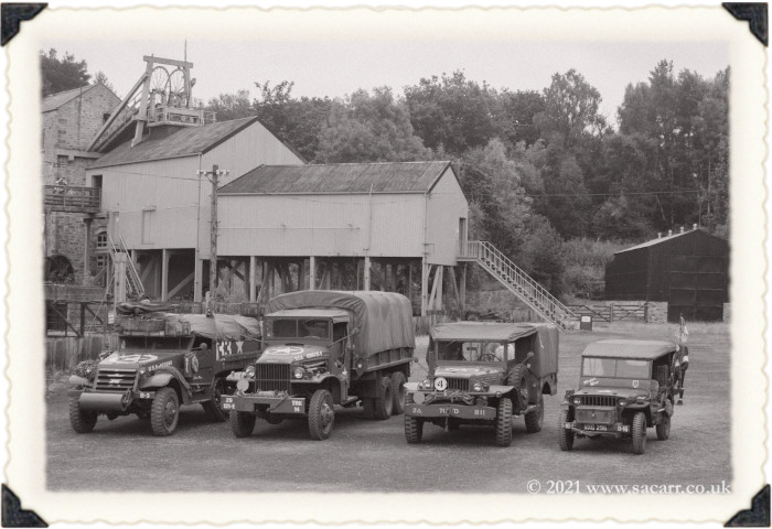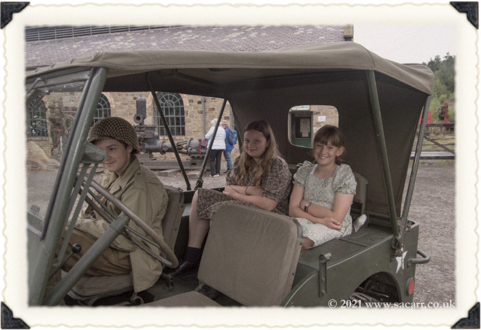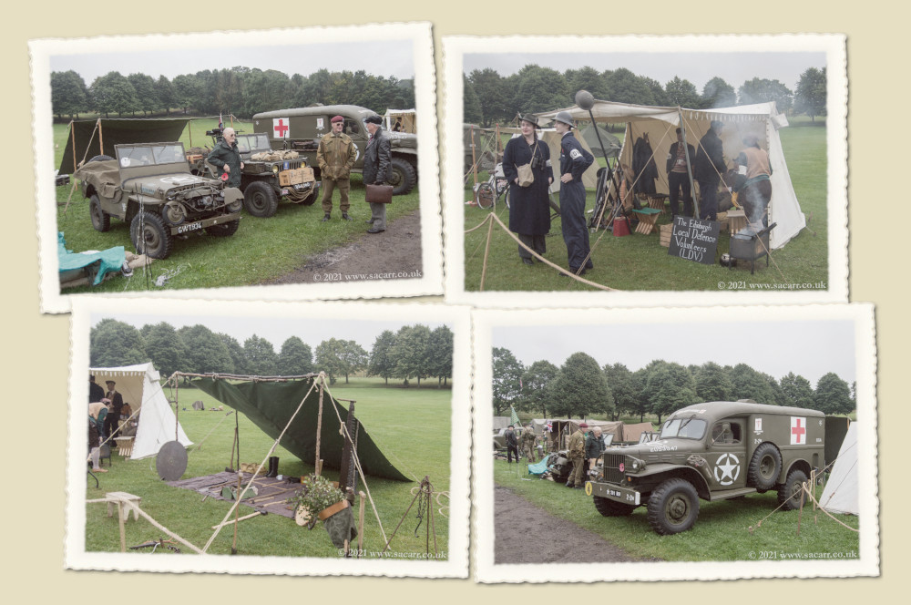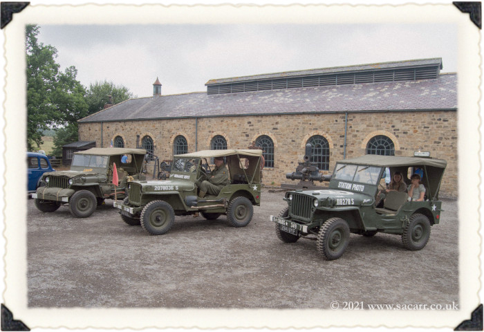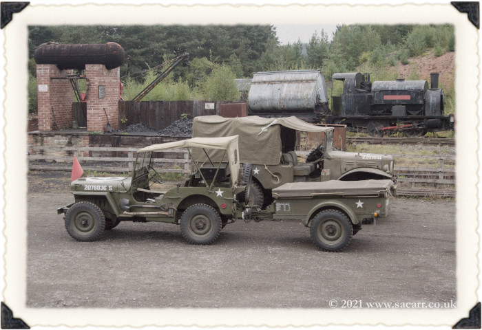 Saturday started out with grey sky and light rain. It looked a bit grim, 'though the satellite forecast showed the showers to be small and not too many. They were however right over the area around Beamish. We all hoped that they would pass. I began the day with a walk along the second show field, photographing the dioramas and other vehicles parked up there.