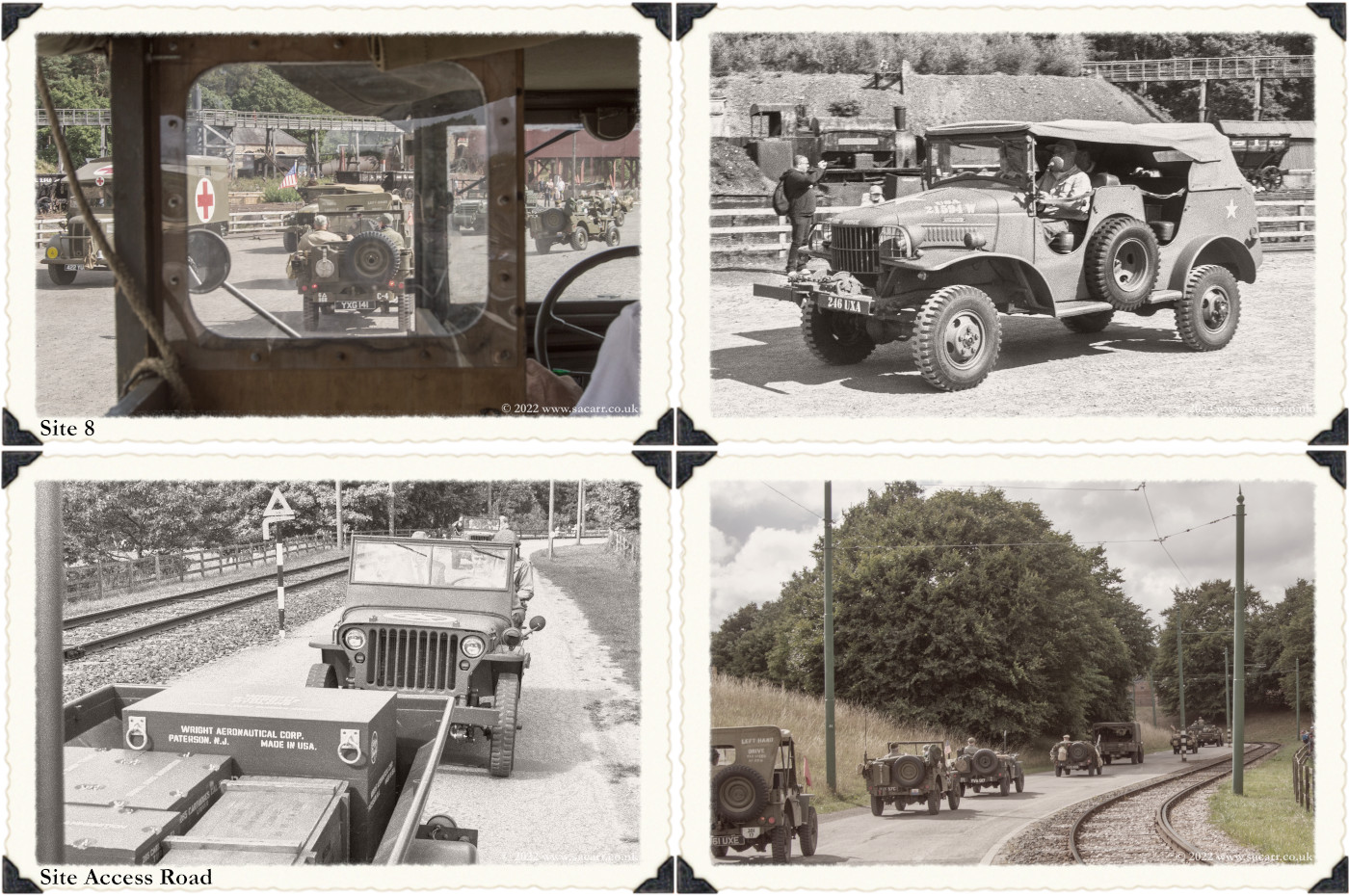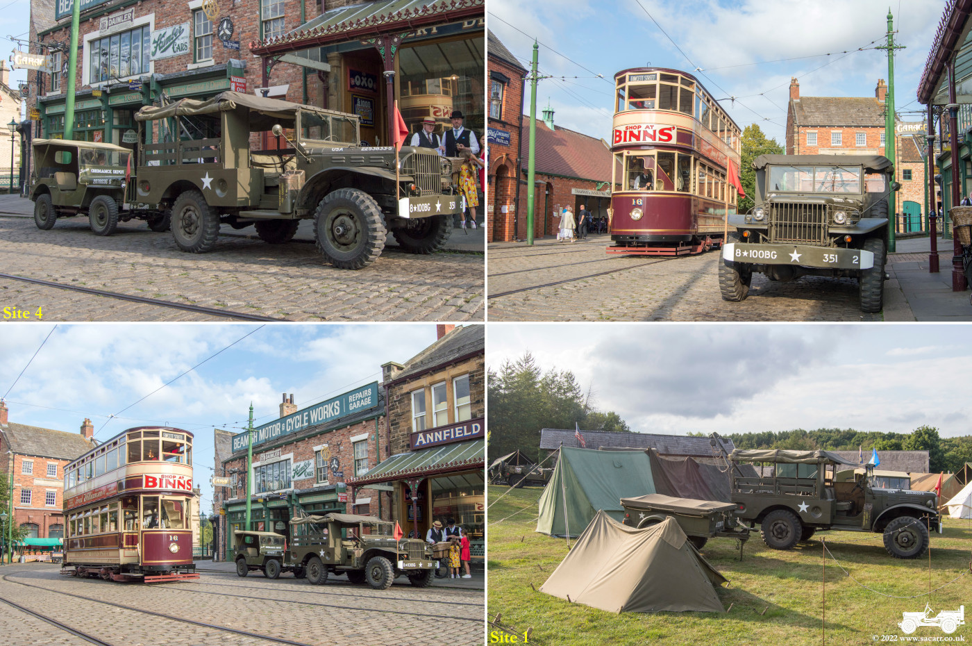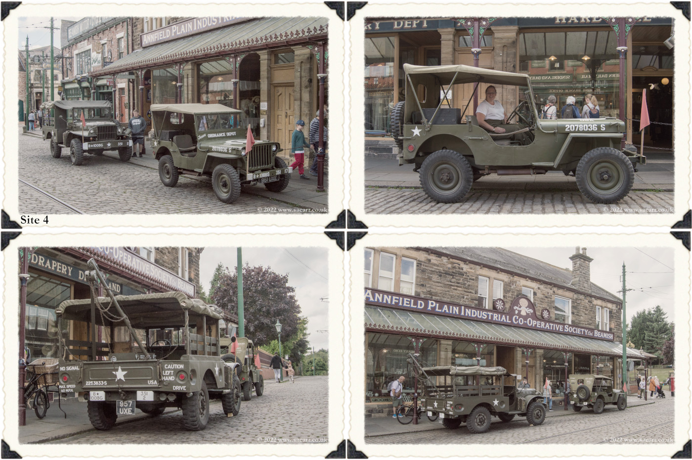 We hung around the show field until the 11am convoy and continued on another lap after everyone else pulled back into the show field. We followed the route again, back to town and stopped at Coffee & Cake Corner ( site 5 ). In addition to being close to the cafe, we got a good view of convoys and other vehicles going by. We headed on to the rail yard ( site 3 ) and after bumping into Lynne's parents there, she headed back to camp with the Jeep while I stayed to get some photos of the Dodge up against the loading platform. We were back in town ( site 4 ) towards the end of the day as the trams were waiting to take the last of the public back to the entrance. Before food that evening, and with