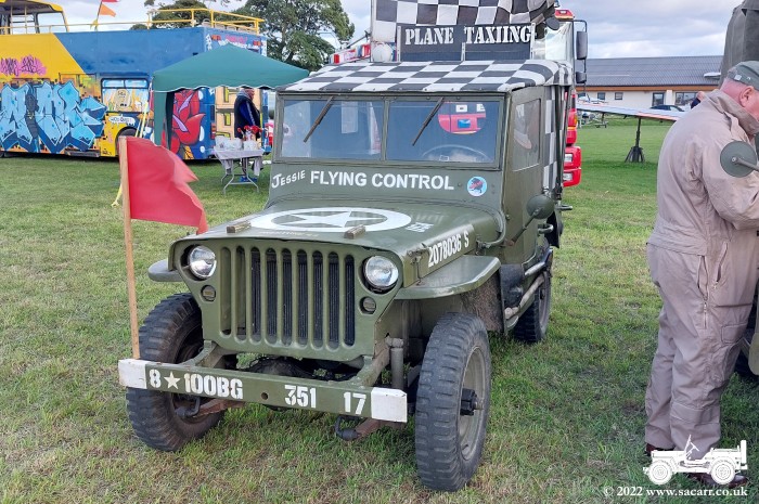 The event was a mixture of classic cars, some military vehicles and dioramas, plus some displays from other periods of history too. There were several stalls of various things, plus live music and some kids entertainment. Being on the top of a hill ( and an airfield ), it was of course cold and blowy. I'd seen the forecast before going and put the full door kit on the Jeep to stay warmer. In addition to the doors and checkered roof, I also fitted the light box, "Follow Me" sign and flag. I hadn't had the light box and sign on for a while, as the Jeep won't fit through the garage door with it fitted. Looking back at older pictures, I surprised myself to find that it is actually three years since I've had the full flying control set up fitted to the Jeep; at Sandtoft airfield in 2019.