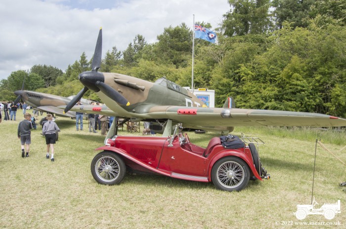 fullsized fibreglass replicas of a Spitfire MkIX and Hurricane fighter