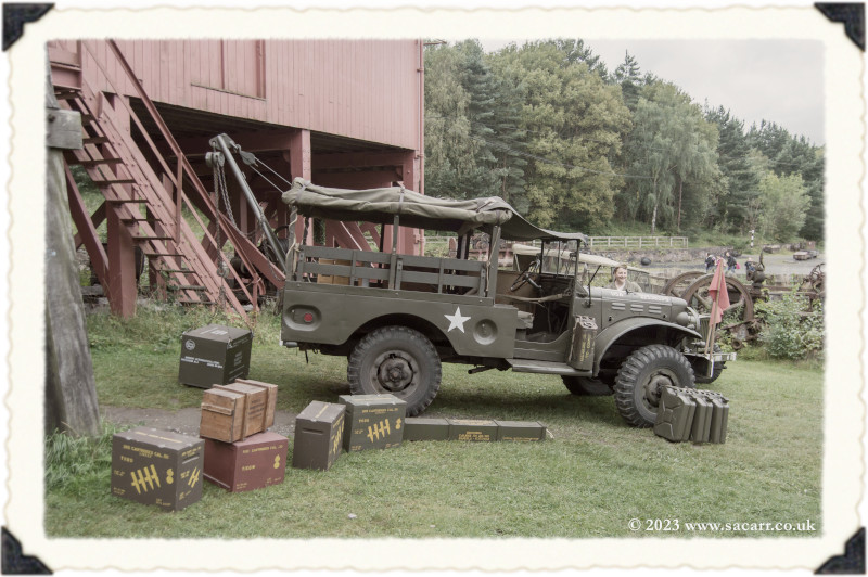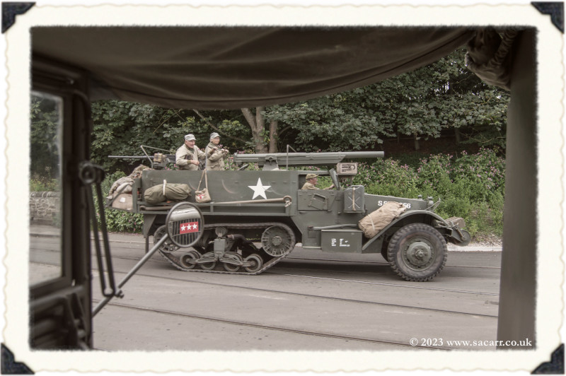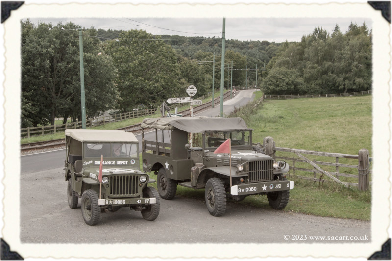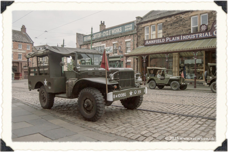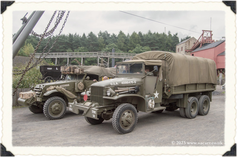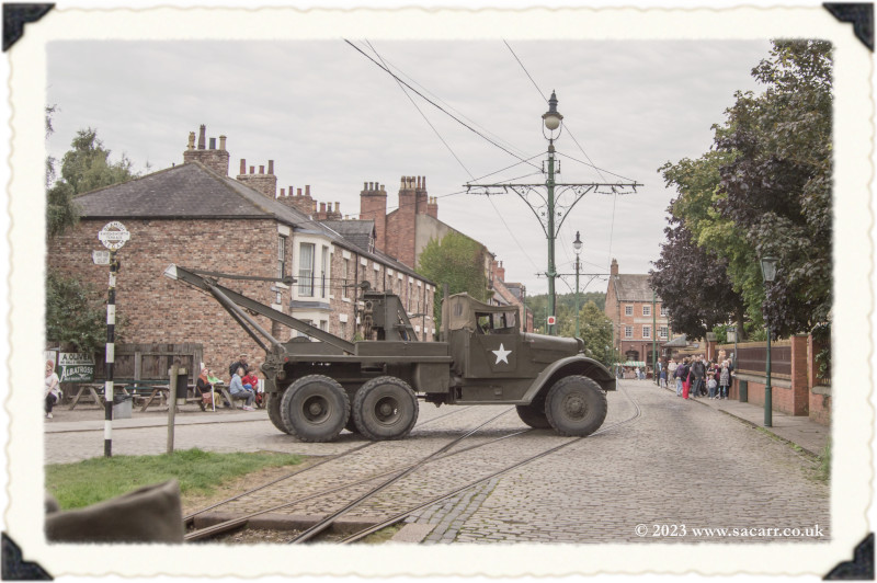 | Lynne and I were back out in the afternoon, grabbing a few photos on the long climb towards the farm, with the 1913 town in the distance. From there, it was down to the colliery again, meeting up with Paul and Laura. It wasn't long before two of the halftracks turned up. This year, there was a record four halftracks at the show, but I never saw them all parked up together. |