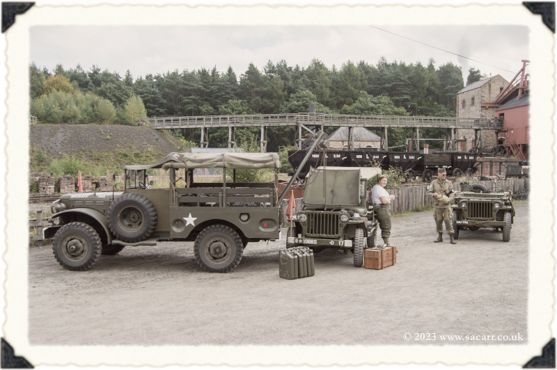 | It wasn't too long before a convoy of heavy stuff came down and the yard began to fill up. Soon after that, Andy turned up. Andy only got his Jeep in October last year, so this was his first Beamish in his own Jeep. For the previous two years, he's driven my Jeep around when Lynne was exploring elsewhere. |