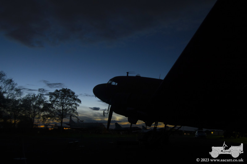I got some silhouettes of the Dakota against the fading sky before