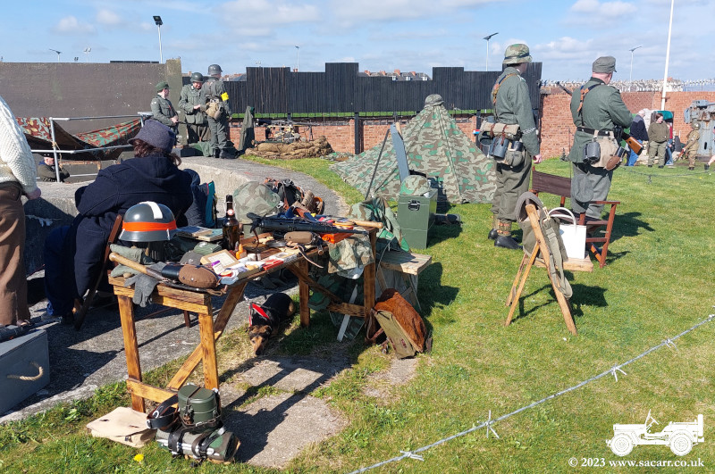 Most of the other vehicles attending were Jeeps, with one Dodge, a couple of bikes, a Kubelwagon and a Landrover 101 Forward Control truck. There were several diorama displays up on the grass around the gun emplacements that took the full chill of the sea breeze.
