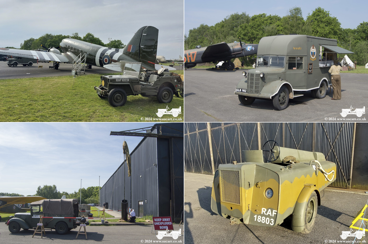 selection of vehicles on show, mostly with an RAF or Commonwealth Forces
