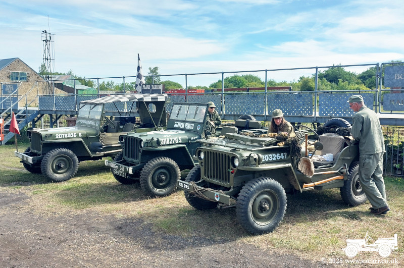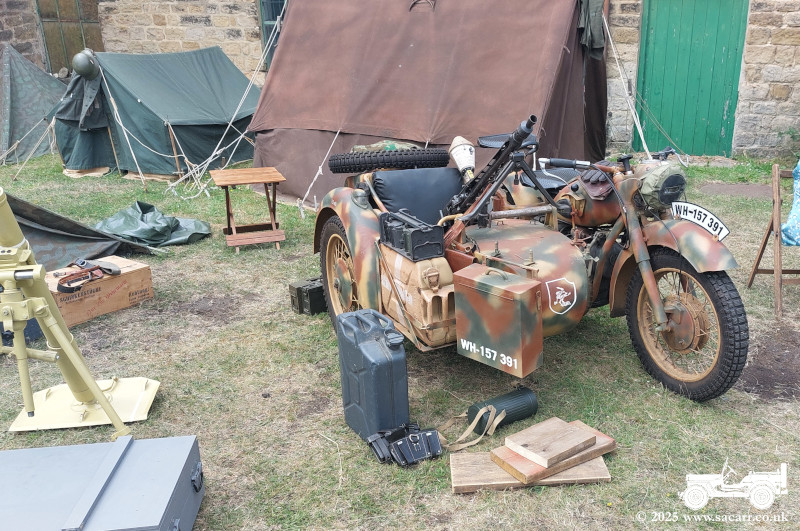 Jeeps, a Kubelwagon and motorbike and sidecar.