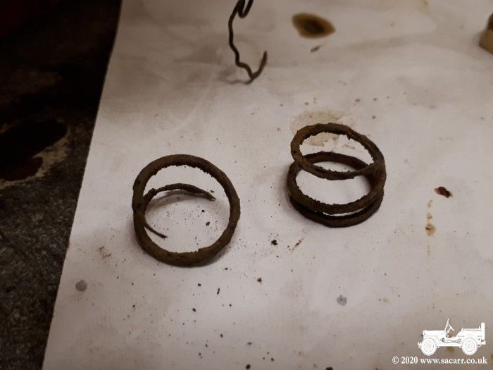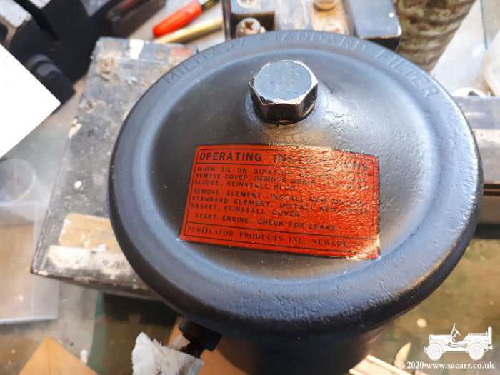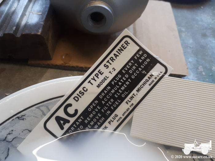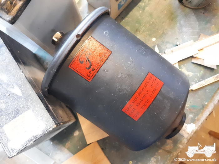 | I got both Jeep fuel filters stripped out for some work today. Both Jeeps got a set of oil/fuel filter decals for Christmas last year, so it was time to make a start on applying them. Both filter bowls were quite scruffy on the outside and the Ford one was a bit corroded on the inside from its time abandoned in Texas before restoration. I'd given it a clean up during the 2012 rebuild, but at the time, I couldn't get the metal filter element out. This limited what I could do at the time. This time around, I managed to free the filter. |