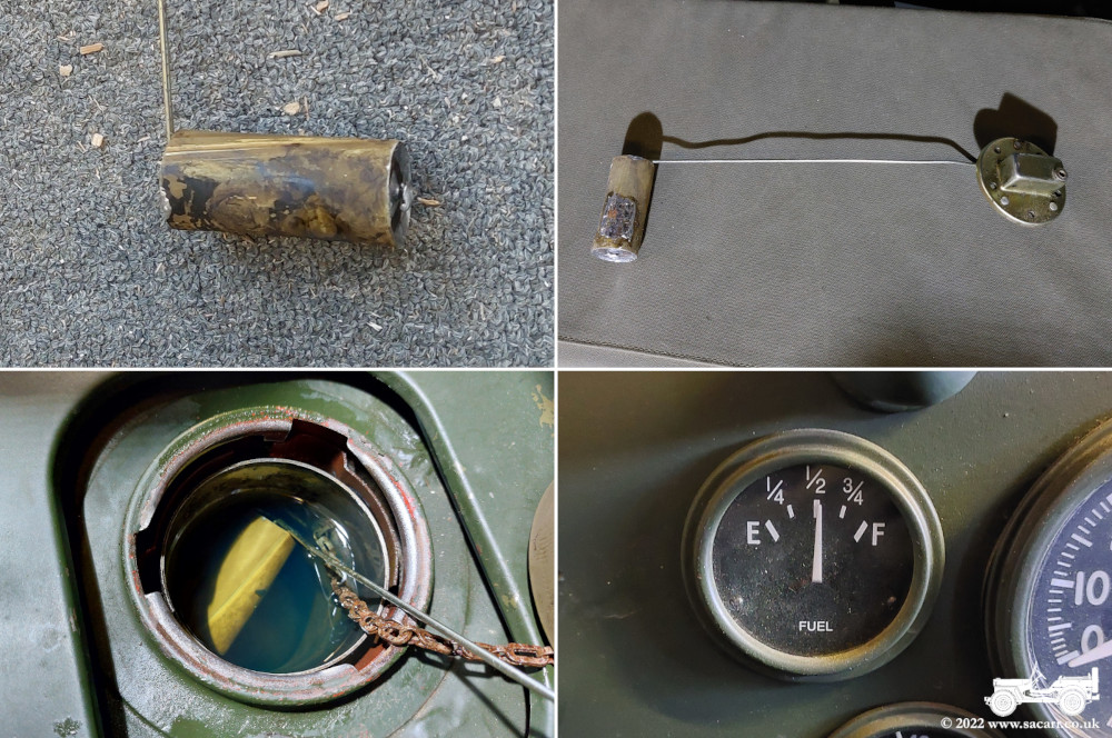 Fuel Tank Sender Repair Back in 2015, the original cork sender float was fuel soaked and wouldn't float. I replaced it with one I made from thin brass sheet. It has done fairly well, but on my last trip out for fuel, the gauge was reading empty, despite a full tank. A quick test with a jumper cable showed the gauge was working, so I suspected either a bad earth ( a common problem ) or a sunk float. I had a feeling that the ethanol in the fuel may have attacked the brass or solder. The jumper wire was used to create a separate earth for the sender, but the gauge didn't move. Pulling the sender out showed my initial gut feeling was correct and I heard fuel sloshing around inside the float. Back in the workshop, I found a small split