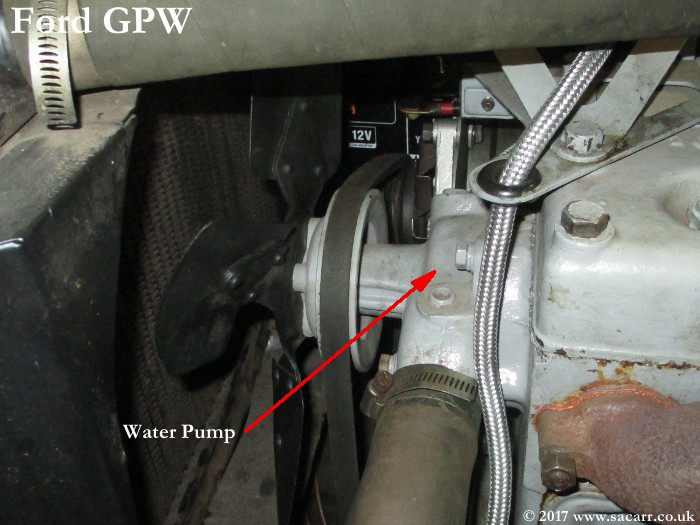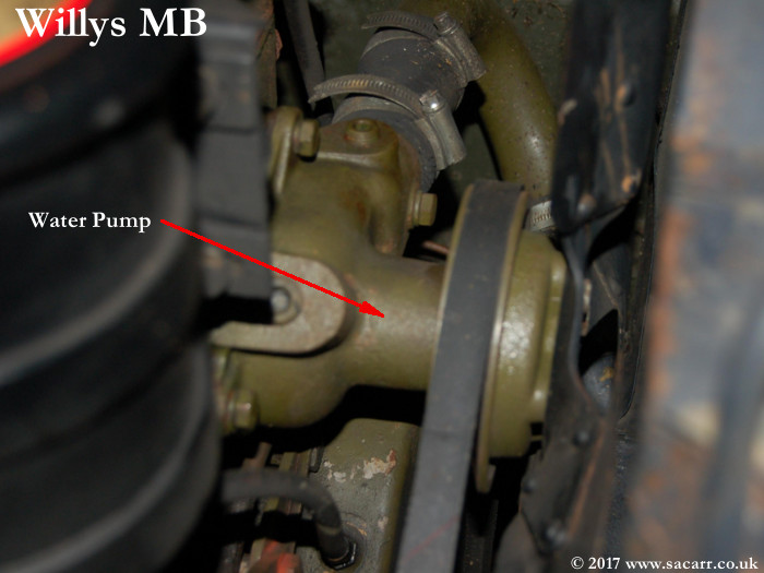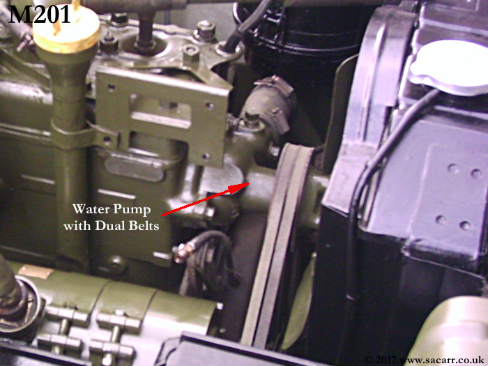On the M201, the water pump had an extra pulley and drive belt fitted compared to the MB and GPW. |