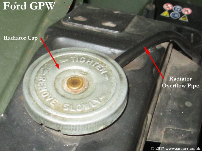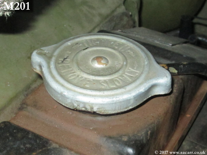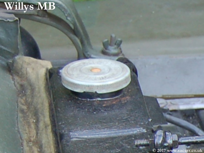 There are three different style of radiator cap shown here. As yet, I haven't seen enough examples to say which type was most common to which vehicle, although these are shown in the order M201, MB and GPW. |
