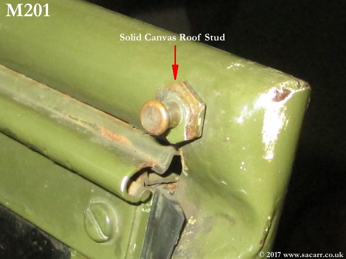 The stud in the top of the wind screen was basically similar. The M201 stud was solid metal. The GPW stud was hollow at the front, with solid material for the self-tapping thread. |