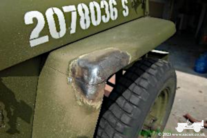 There was a small patch of growing rust on the rear corner of the right fender. After a quick grind with a wire brush, revealed itself to be a small patch of rust and a large patch of filler. The rust was ground out and low the area built up with weld. The area inside where the reinforcing plate was was also treated, and filled to prevent moisture being trapped. After, the area was primed and resprayed. |