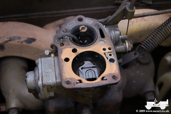 The Jeep engine has been missing occasionally and seemed down on power recently, so today the plugs were stripped and cleaned. Unlike the standard Willys plugs, these are the sealed type with the screw on ignition leads. Each plug can be split in two, and buy unscrewing the top section, the centre terminal can be withdrawn allowing cleaning of it and the contacts within the plug body. All the plugs were re-gapped and checked for spark before fitting. The air filter was also removed, stripped, cleaned, a load of creamy sludge removed from the bottom, re-oiled and re-fitted. A quick road test showed the engine to be running much better.