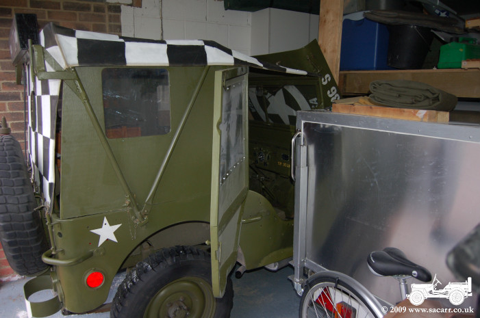 The other main job for the day was to modify the winter side doors to fit the checkered canvas. With this canvas being slightly tighter, the front edges of the doors needed trimming where they butt up against the screen. Getting out of the Jeep in the garage is now a tight fit! Smaller jobs done were to repair the glazing on one of the trailer indicators and to start making a 'Follow Me' sign to fit above the light box. |