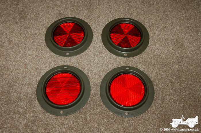 February 1st '09 - Stoneleigh Military Fair Purchases Something that's been a bit tatty for a while is the reflectors, Hotchkiss ones, one of which was cracked. Because the Jeep I originally copied was an early type, I got some NOS 'Tiger Ey' reflectors. |