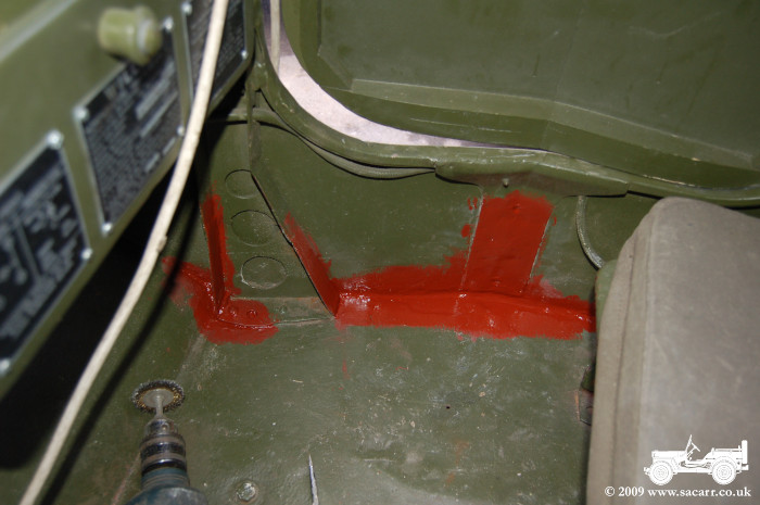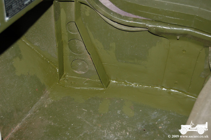 This weekend saw the inside of the Jeep being treated for areas of rust along various seams. It was a cold day which did slow up the painting, but because the doors were still on, I had a 2Kw fan heater in there with me which certainly made it a more pleasant job, and did speed up the drying times! I'm sure it won't take long for the new paint to weather in to match the old.
