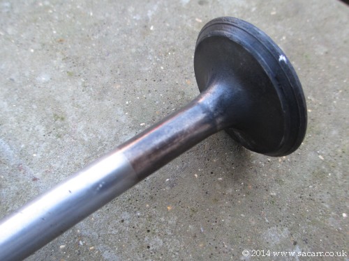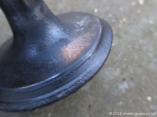 This valve is the one that has been causing all the trouble and accounts for the low cylinder pressure. One part of the circumference is severely eroded. |