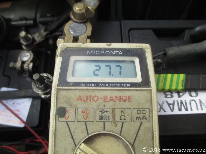----- March 13th - Battery Replacement After getting the Jeep running again a week ago, it still proved difficult to start. A couple of days ago, I couldn't get it to start at all. I suspected the batteries were at fault, not providing enough power to the starter and coil. A check of the voltage while the starter was turning over showed the voltage dropping to about 19 volts. While I had been seeing a spark during tests, I suspected it wasn't powerful enough to get the engine started, especially when cold, with thick oil and harder to turn over. Over the weekend, I ordered a new set of batteries which arrived today. This new set of batteries is the fourth set fitted to the Jeep in my time owning it. While the Jeep isn't used regularly, and that doesn't help them, I felt that this battery consumption wasn't right, so I decided to check into things a little further. Checking the voltage at the batteries after starting, I was getting 25.6 volts at idle. As the RPM increased, the voltage increased peaking between 30 to 33 volts. This was far too high. The regulator is meant to keep it between 27.5 to 28.5 volts but was exceeding this by up to 5 volts. The regulator still had the cover retaining bolts