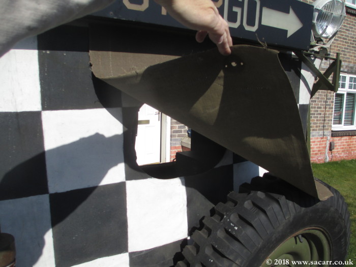 However, this job has been on hold as I lost the canvas I was going to use. That was found in my workshop yesterday while looking for something unrelated. The attachment is very simple. The end of the canvas was wrapped around some 3/8 dowel and was glued and stapled. The canvas was waterproofed with some tent sealer. The canvas slots down between the Jeep roof