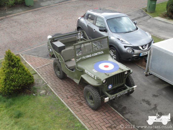 On March 7th, the fuel tank, driver's seat and steering wheel were re-fitted. The tank was connected up and partially filled to check for leaks from the feed pipe. After that was seen to be ok, further fuel was added and I prepared for the first start. Before trying to start, I turned the engine numerous times on the starting handle to try and move a little oil around the galleries. It was around five and a half months since the engine last ran. It took quite a lot of priming with the pump and starter to get the fuel along ten feet of fuel line. After a couple of almost starts, I ran some fuel down the carb and shortly after that, the engine burst into life, running nice and smoothly. Jessie and Hope were then swapped side to side in the garage so I could get Jessie out more easily to finish off the odds and ends needed to be ready for the season. This was the first time out for Jessie in the new RAF markings. |