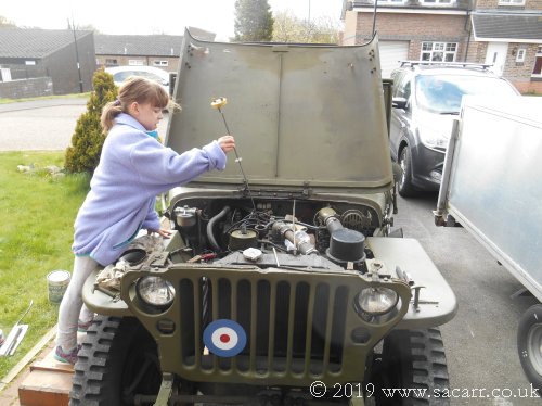 April 12th - Springtime Service After a February which started with snow, it turned into a record breaking mild month. Perhaps I should have done the servicing then, as March was terrible, as was the first half of April. Finally, mid-month was looking good and with it being the school Easter holidays, plus wifey needing to work, daddy day care was going to be a working one for little legs. At nine years old, she's sensible and big enough to be useful. So right from the start, I let her do the fuel priming and engine start before pulling out of the garage and onto the drive to warm the oil before the change. While the engine was running, were checked all the lights. I'd done all the wheel bearings over the winter and checked the brake shoes. Idle and charge voltages were checked using the volt meter fitted last year. After a year of monitoring on long and short trips, the regulator seems set about right, so no more cooking the batteries. |