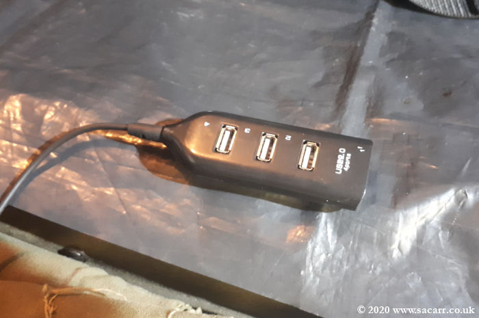 August 19th - Additional Auxiliary Power Supply I did a little tinkering on the Jeep again this morning. For a while, I've had a 24v to 12v converter to power the satnav when out and about. I had to unplug the satnav if I wanted to charge my phone.I've now added a second cigar lighter socket, a 12v to 5v USB adapter and a USB hub. So now I can run the satnav and charge several USB devices at the same time. Useful for when I'm camping and have no mains. |