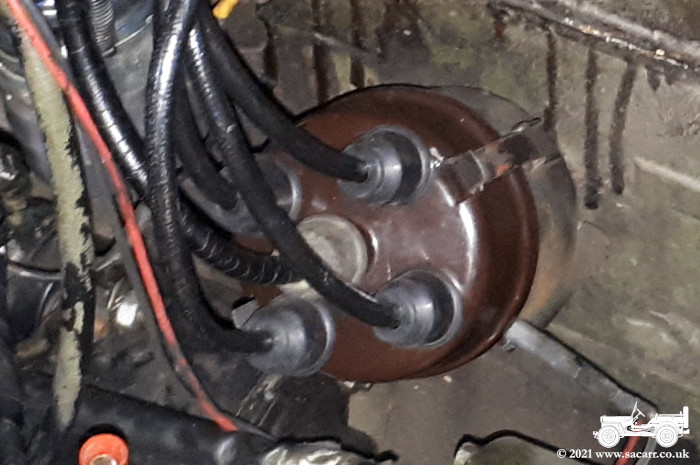 April 20th - New Ignition Parts Fitted After our anniversary drive on the 16th, the following day I gave both Jeeps a good washdown to remove any traces of winter road salt. Once dry, Jessie wouldn't start. I'd noticed for some time that I was getting shocks from various points on the HT leads and starting was getting harder than it should have been. I changed the coil for a spare and got the Jeep started, but it still didn't feel right, so I ordered a replacement dizzy cap, rotor arm and HT leads. They arrived and were fitted on the morning of the 20th. |