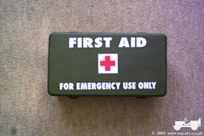 The First Aid Tin from "Soldier of Fortune" is an ex-French unit. It is wider and taller than standard as the bracket had to be modified slightly to fit. It needs painting with WW2 Markings.