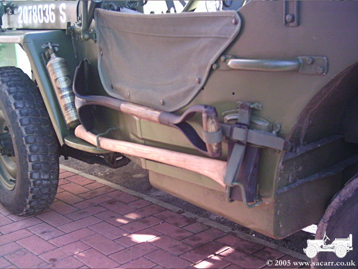 The repro axe & original shovel were from Jeeparts. The straps came from Dallas Autos. It took a few minutes to work out the correct way to fasten them.