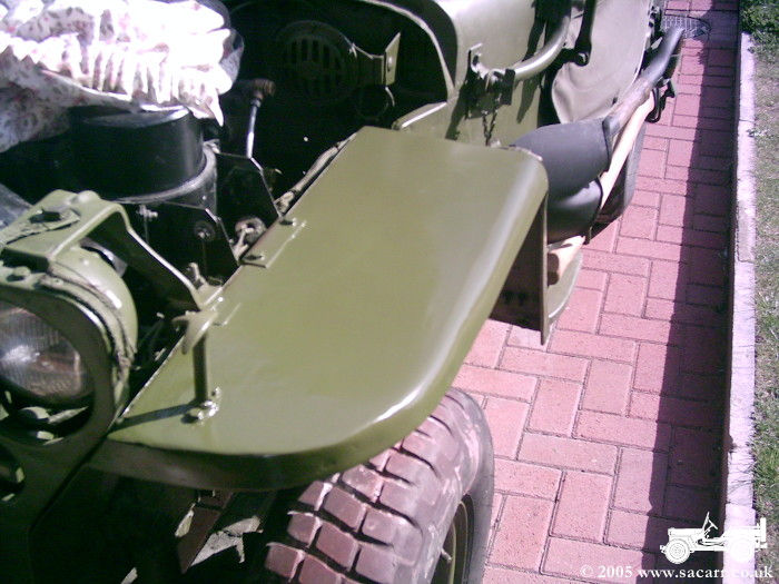 The jeep I am copying is an early model which didn't have a Black Out light fitted. The Hotchkiss B/O light is different to the Willys version anyway, so it was removed in April '06, the holes welded and the fender re-sprayed.