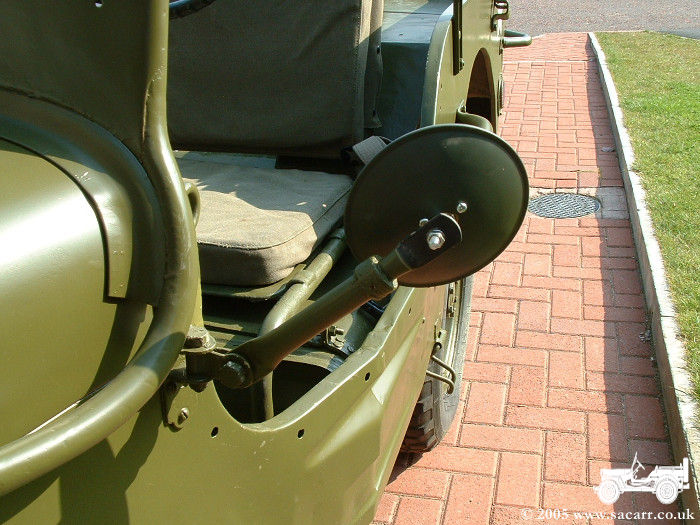 The mirror was the first of the small details to change. Hotchkiss changed this for a much larger, more rectangular shaped mirror, whereas the Willy's original was a circular design.