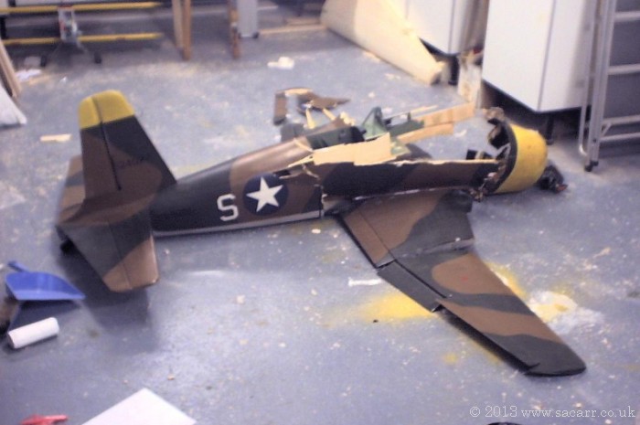 The front fuselage was shattered and also the outer left wing, and part